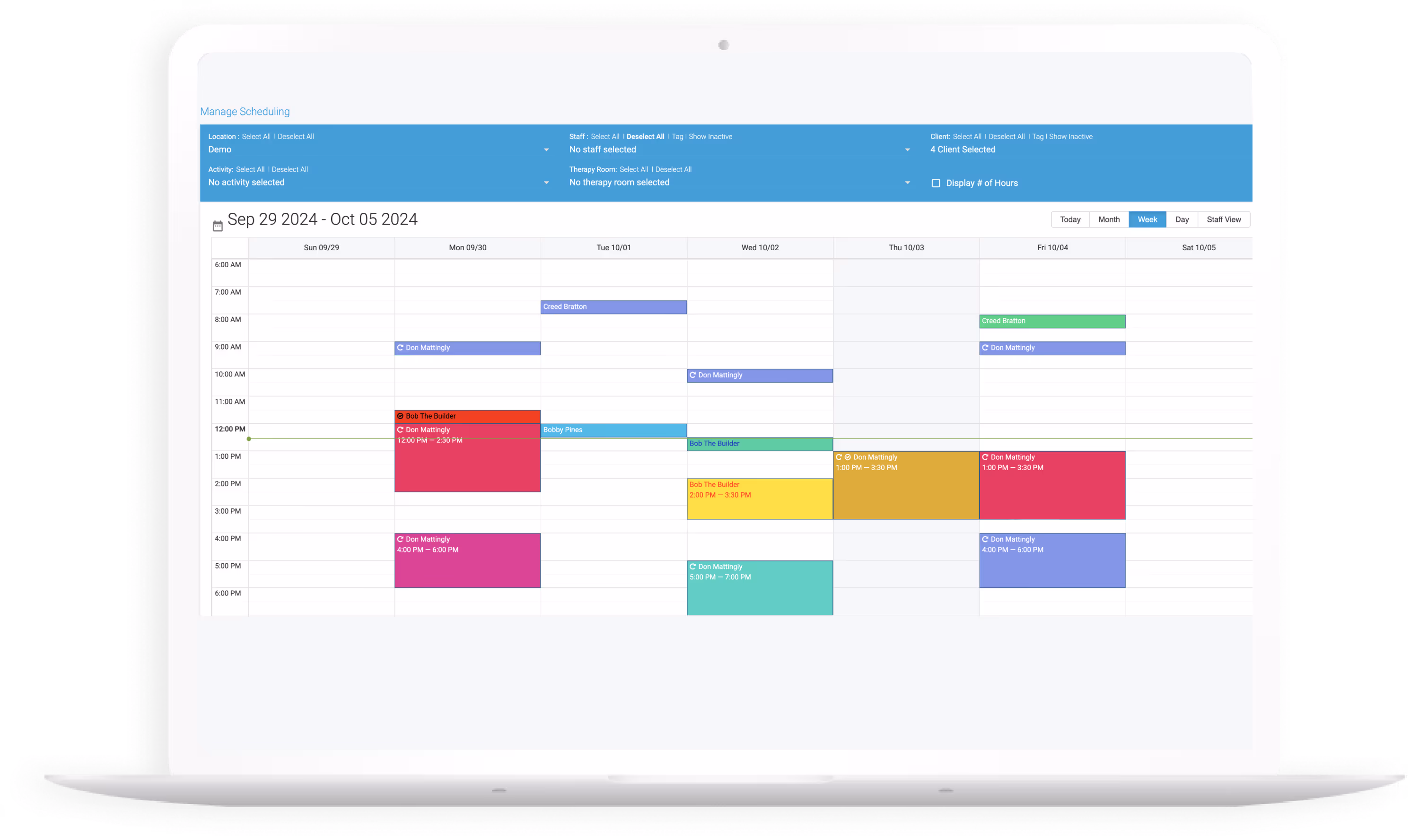 Our ABA Scheduling Software will help you manage every aspect of your ABA practice with customization and flexibility. Optimize appointment management, staff coordination, and client engagement.