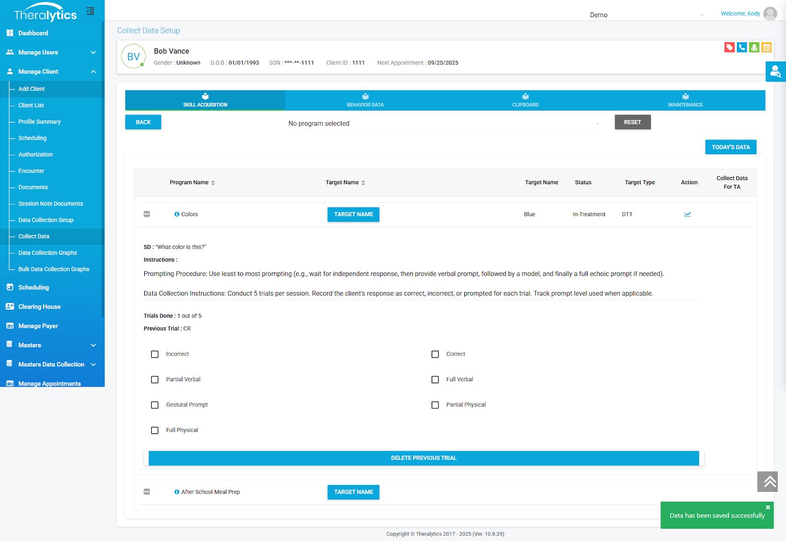 At its heart, quality data collection is what makes ABA therapy work. It allows us to see what's happening, tailor our goals, and make sure our treatment plans are grounded in real evidence. When therapists, parents, and caregivers all work together to gather accurate data, they're creating the best possible path for success. Theralytics allows therapists to build detailed client profiles that outline treatment plans, target goals, and specific behaviors. Data can be collected directly within sessions, with graphs and reports generated instantly, saving time and creating more opportunities to focus on meaningful connections with each client.